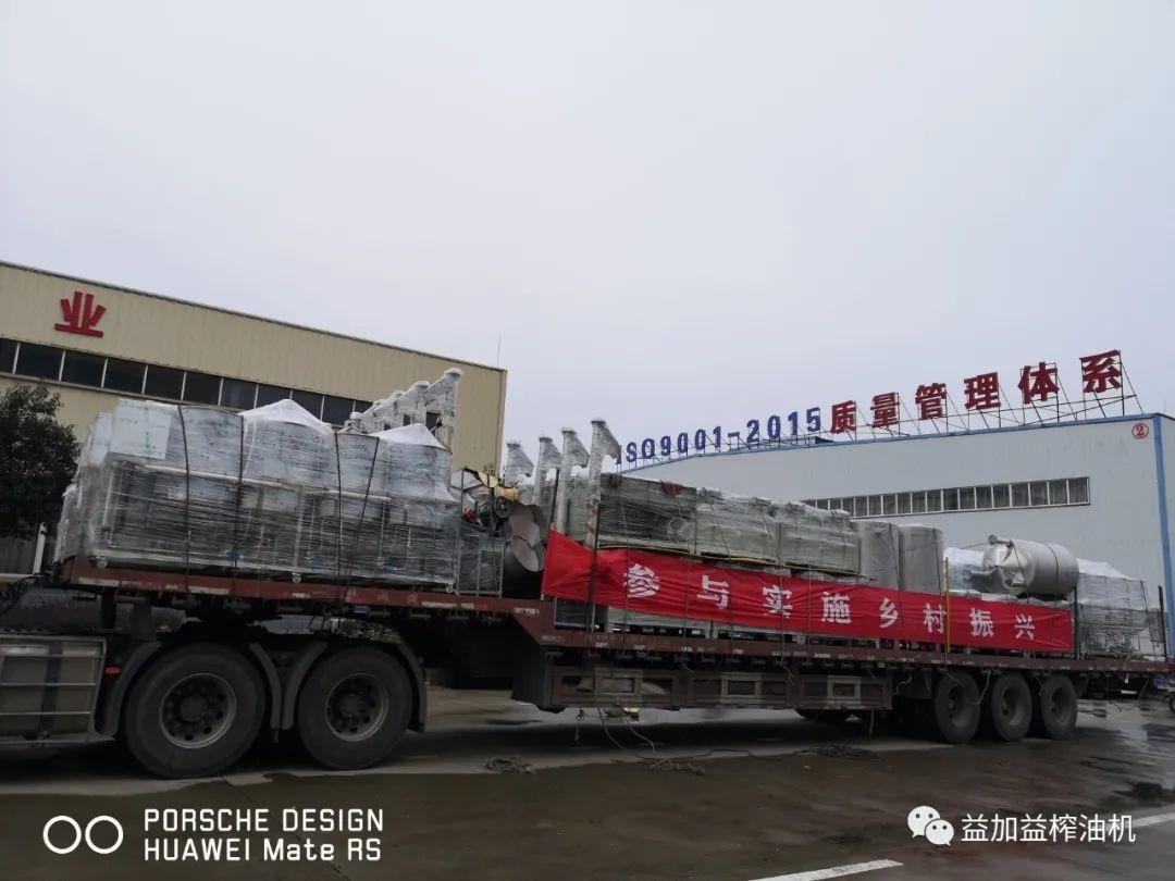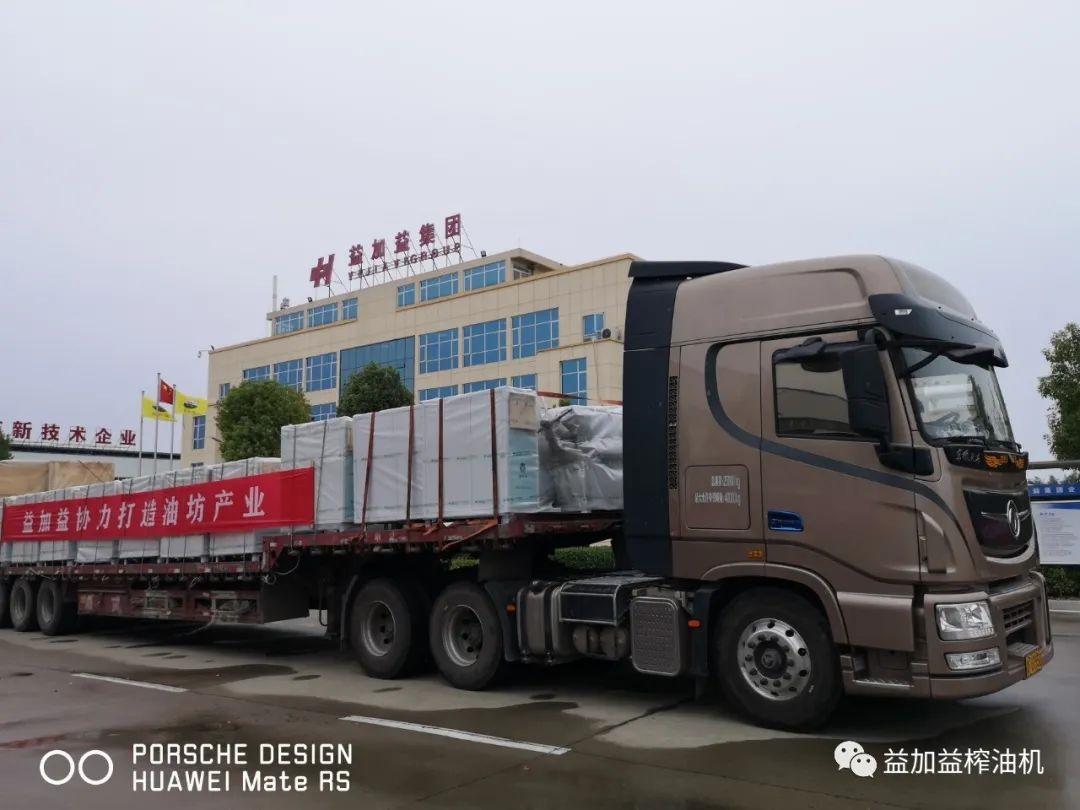 國(guó)慶節(jié)后開(kāi)工第一天,訂單忙、生產(chǎn)忙、發(fā)貨忙......益加益產(chǎn)業(yè)園區(qū)內(nèi)一派繁忙景象。在發(fā)貨現(xiàn)場(chǎng),運(yùn)輸物流車輛忙碌不停,一輛接一輛緩緩駛出,一臺(tái)臺(tái)“益加益制造”的高品質(zhì)榨油機(jī),發(fā)往廣西自治區(qū)百色市田林縣各個(gè)山茶油專業(yè)合作社。