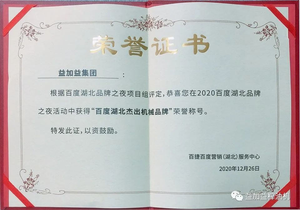 熠熠生輝 | 益加益集團(tuán)榮膺“湖北省杰出機(jī)械品牌”